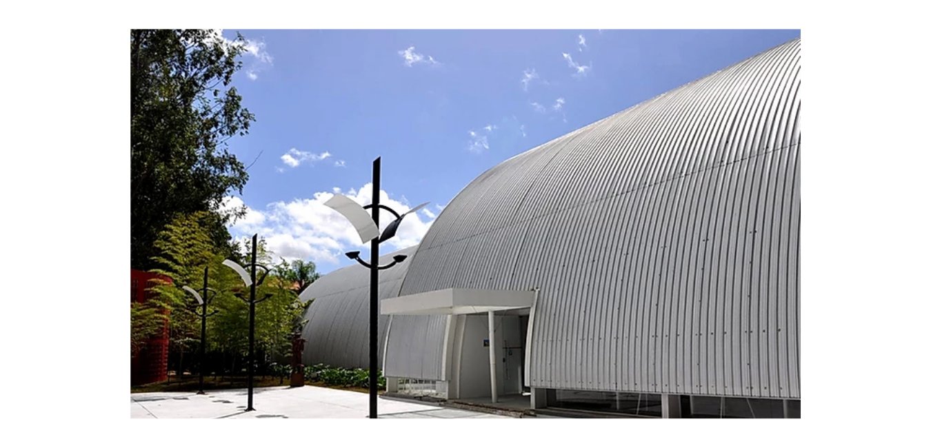 As telhas curvas do perfil LR 25 podem compor coberturas de arquitetura diferenciada e fechamentos laterais associando-se as telhas retas às calandradas.